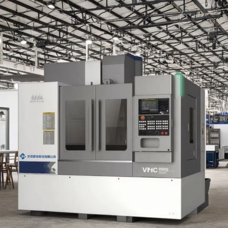 O VMC850Q é um centro de usinagem vertical de alto desempenho.com uma costela esquelética externa em forma de cruz no ladoA caixa de fuso, com uma estrutura termicamente simétrica única, neutraliza eficazmente a deformação térmica.que pode suportar um peso máximo da peça de 600 kgEquipado com um motor de fuso de 7,5/11 kW, ele atinge até 10000 rpm. A revista de ferramentas de 24 posições, juntamente com um tempo de mudança rápida de ferramentas de 2,5 segundos, garante operações de alta eficiência.A velocidade de travessia rápida de 3 eixos é de 48 m/minÉ perfeito para fresagem, perfuração, perforação e toque em várias indústrias como automóveis e máquinas gerais, garantindo precisão e produtividade.